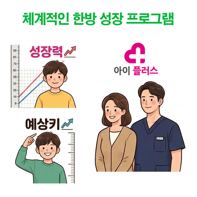 아이플러스한의원에서 양방의원과의 협진을 통해 현대의학적인 진단과 한의학적인 원인 치료를 결합한 ‘체계적인 한방 성장 프로그램’을 시행하고 있습니다.